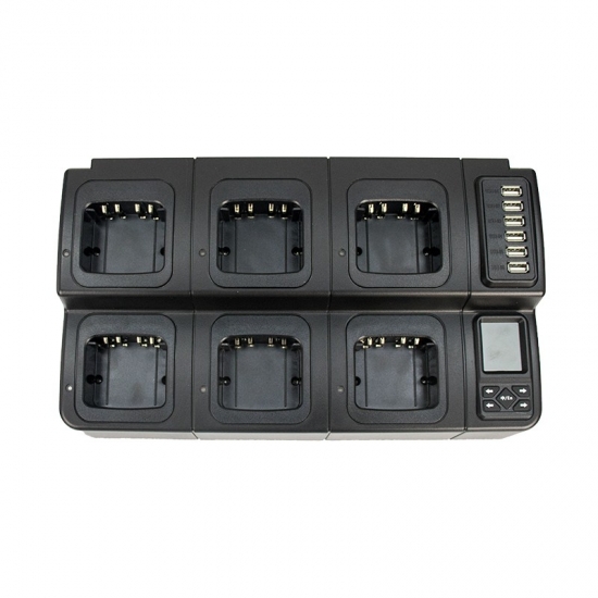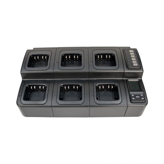 Mais de 30 tipos de slots para escolher, e é compatível com mais de 300 tipos diferentes de baterias, incluindo Motorola, Kenwood, Vertex, ICOM, Hytera e outras marcas. Também possui 6 portas USB-A. Personalize conforme sua necessidade.